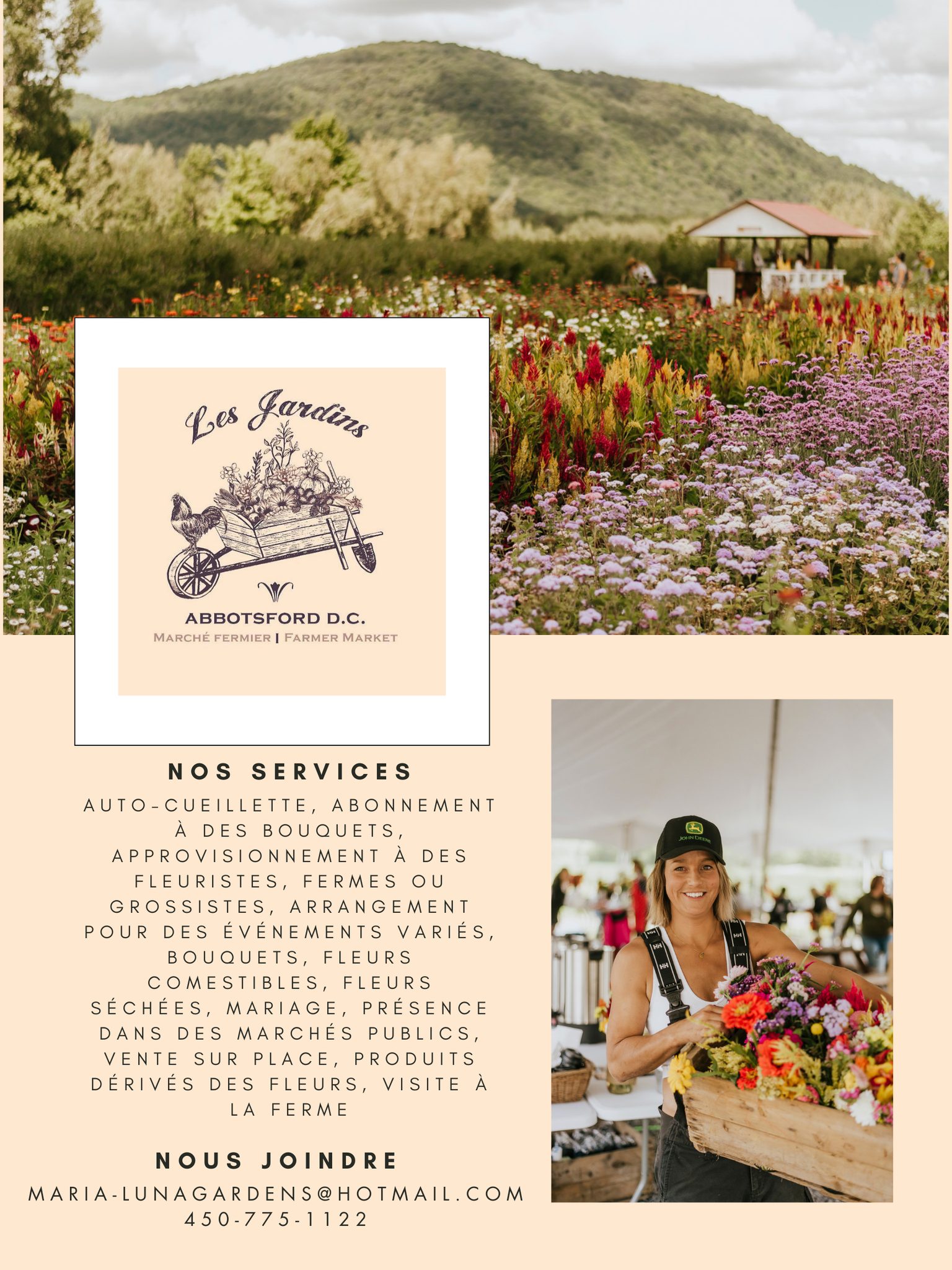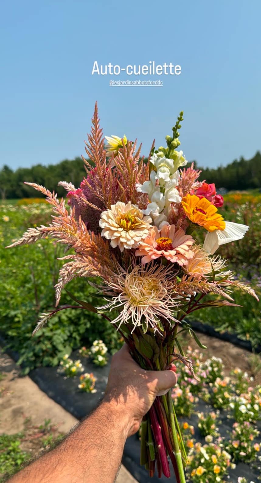 Le bonheur est dans les fleurs aux Jardins de Maria-Luna. Ceux et celles qui le souhaitent peuvent donc venir cueillir leurs propres fleurs en se présentant aux Jardins d’Abbotsford, situés sur la route 112, à Saint-Paul-d’Abbotsford. Le coût est de 15 $ par personne et vous pouvez récolter autant de tiges que vous le souhaitez, à condition que la gerbe tienne dans une seule main.